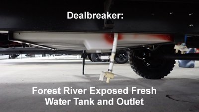 A design flaw I could not rectify was not what I wanted to see. Going on-line I found a couple Forest River owners who had already had their water outlets broken off. Not something I could correct and combined with the dealer's higher than normal "Prep Charge" the Forest River Auora 13RDX was out of the running.